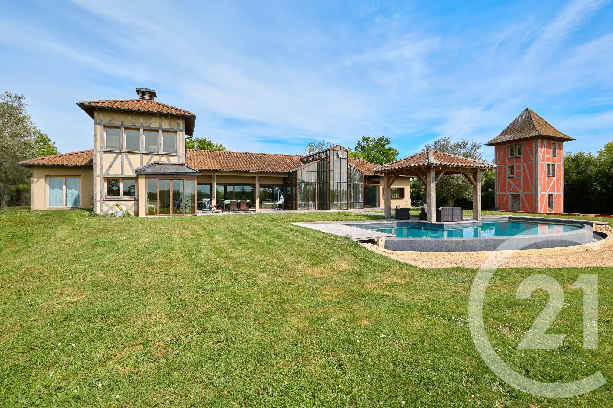 Vous serez séduits dès l'entrée par la serre intérieure en pleine terre et ses plantations exotiques, l'immense pièce de vie avec une vue imprenable sur le jardin, la piscine chauffée à débordement et l'étang communal à l'horizonCette demeure va vous permette d'accéder à une vraie qualité de vie au quotidien grâce à son spa intérieur enterré avec baie vitrée escamotable, une salle de sport, un sauna, une pièce dédiée pour le home cinéma avec écran intégré. Coté nuit cette villa se compose de quatre chambres spacieuses avec trois salles de bains. La cuisine aménagée et équipée offre également beaucoup d'espace et un accès direct à la terrasse extérieure. Le bureau confère un panorama impressionnant sur le terrain grâce à ses multiples fenêtres, pour travailler sereinement au calme de la campagne.